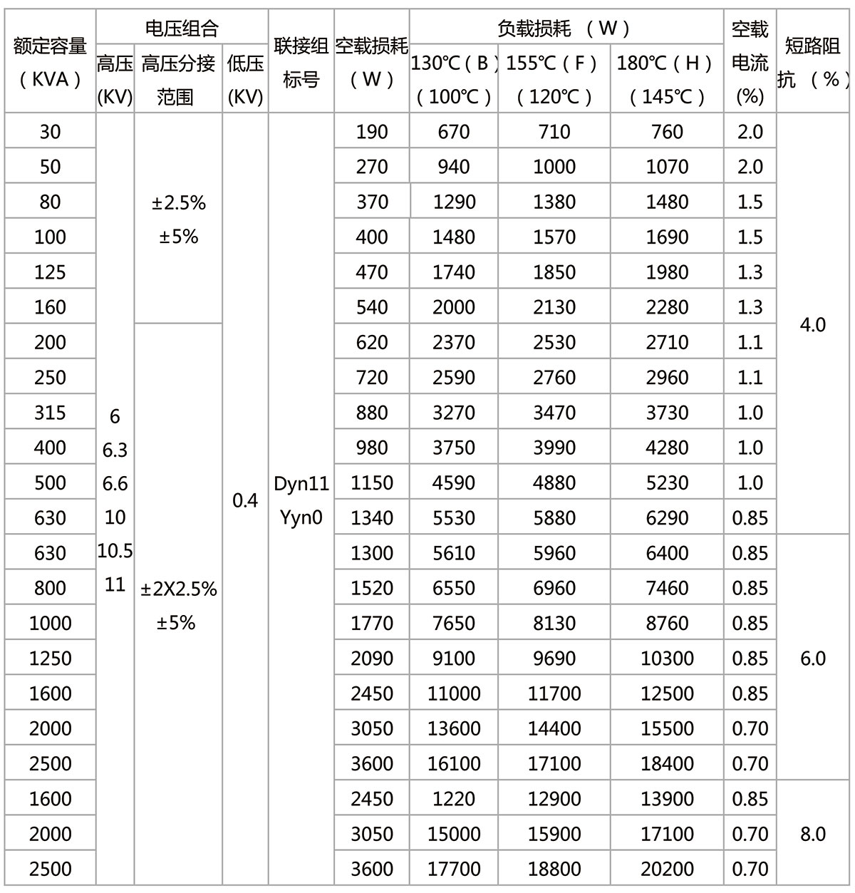 4.損耗低,局部放電量低、噪音小、散熱能力強(qiáng),強(qiáng)迫風(fēng)冷條件下可以150%額定負(fù)載運(yùn)行。